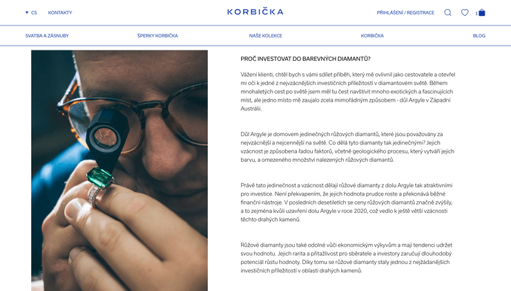 E-shop zaměřený na prodej luxusních šperků. Čistý a jednoduchý e-shop prezentuje poctivé řemeslo a značku Korbička. Celé řešení je napojeno na účetní software ABRA Flexi.