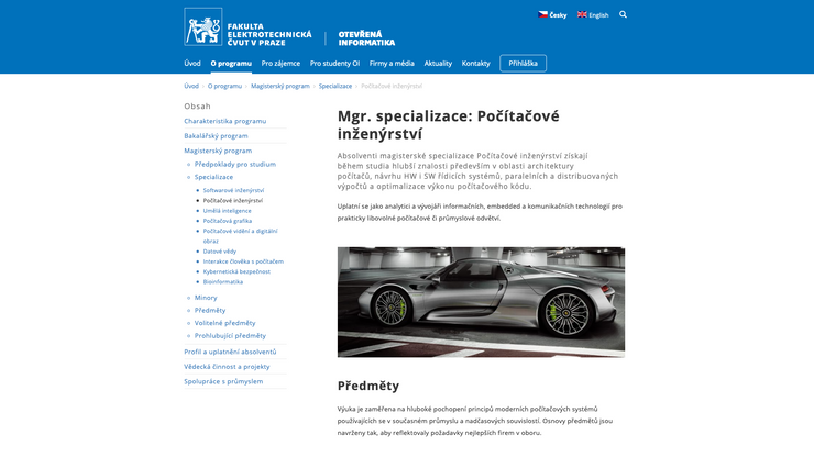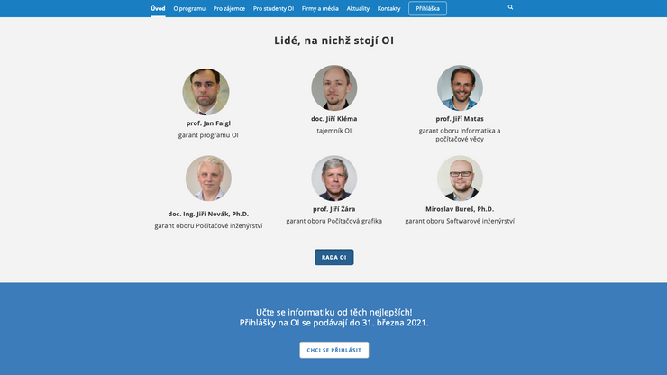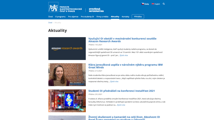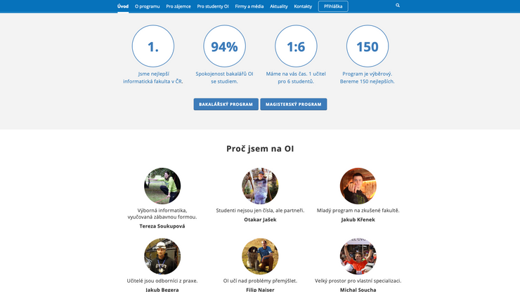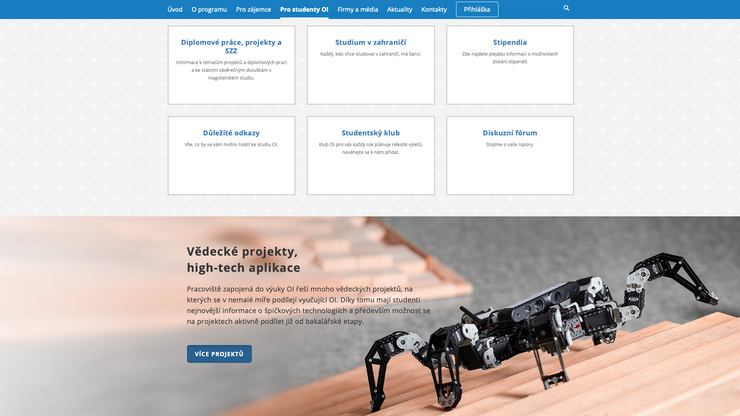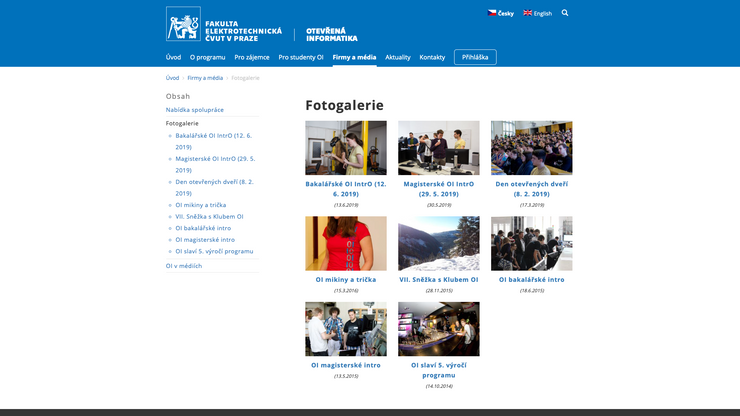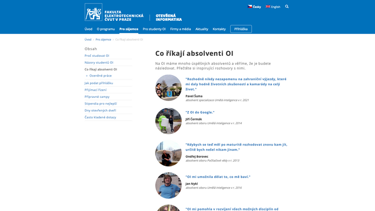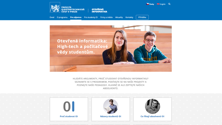 ČVUT, Fakulta elektrotechnická, prezentace programu Otevřená informatika. Obsáhlý informativní web pro stávající studenty a pro nové zájemce o studium.