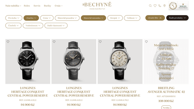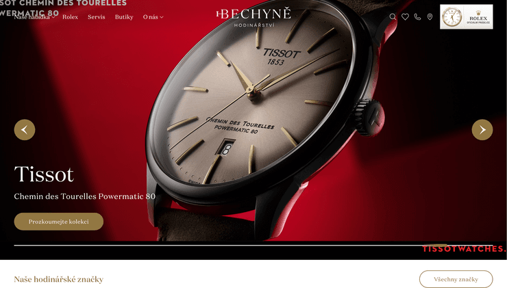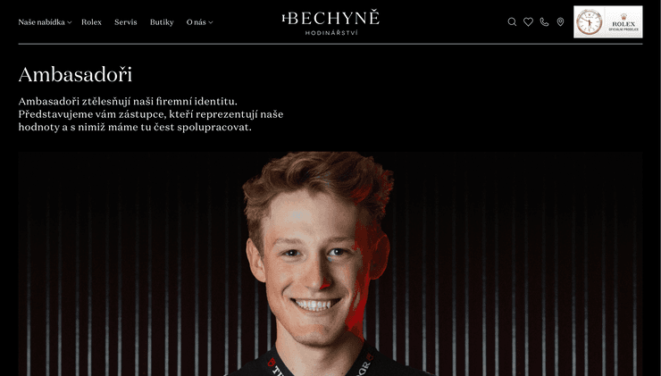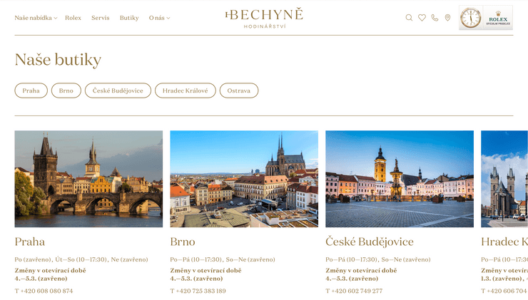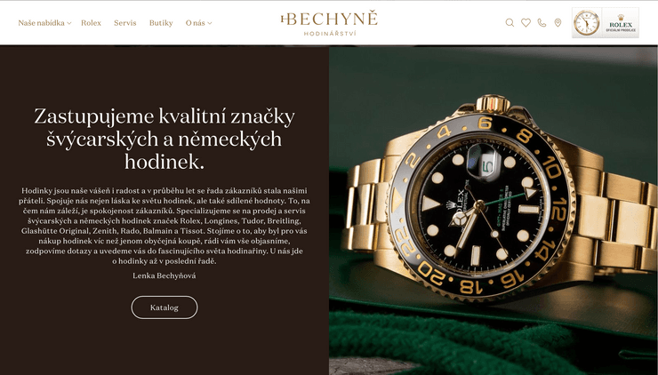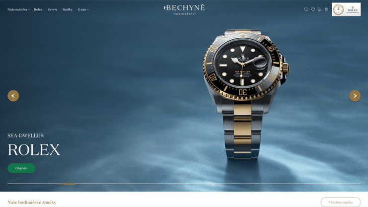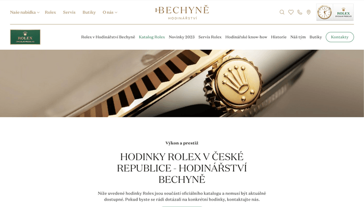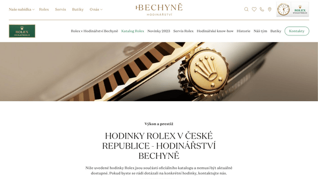 Značka Rolex na webu Hodinářství Bechyně disponuje vlastní sekcí, která zahrnuje katalog hodinek Rolex, novinky a zajímavosti ohledně značky, důležité informace o servisu a historii, představení týmu a butiků.
