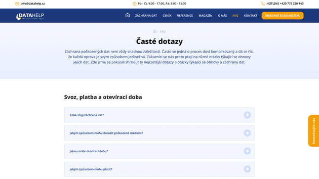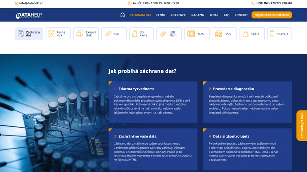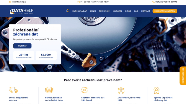 Pro společnost Datahelp jsme realizovali kompletní návrh a realizaci webové prezentace. Cílem projektu bylo vytvořit moderní, přehledný a uživatelsky přívětivý web, který jasně komunikuje nabídku služeb v oblasti IT bezpečnosti a datové ochrany.
