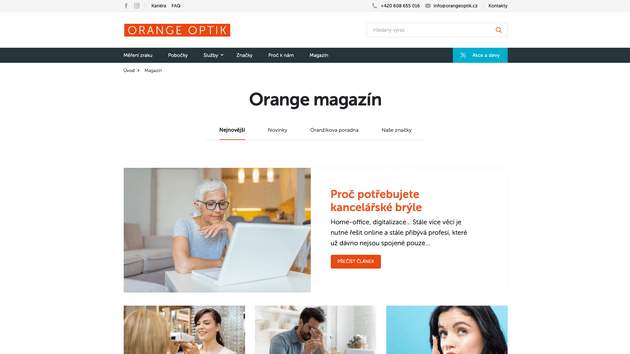 Obsahově rozsáhlejší webová prezentace pro síť optik v České republice. Prezentace služeb, značek i jednotlivých poboček byla doplněna o akční nabídky i magazín.