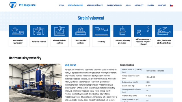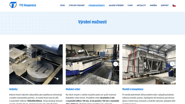 Prezentace společnosti TYC Kooperace s.r.o., která je dodavatelem strojních dílů zákazníkům v mnoha průmyslových odvětvích.